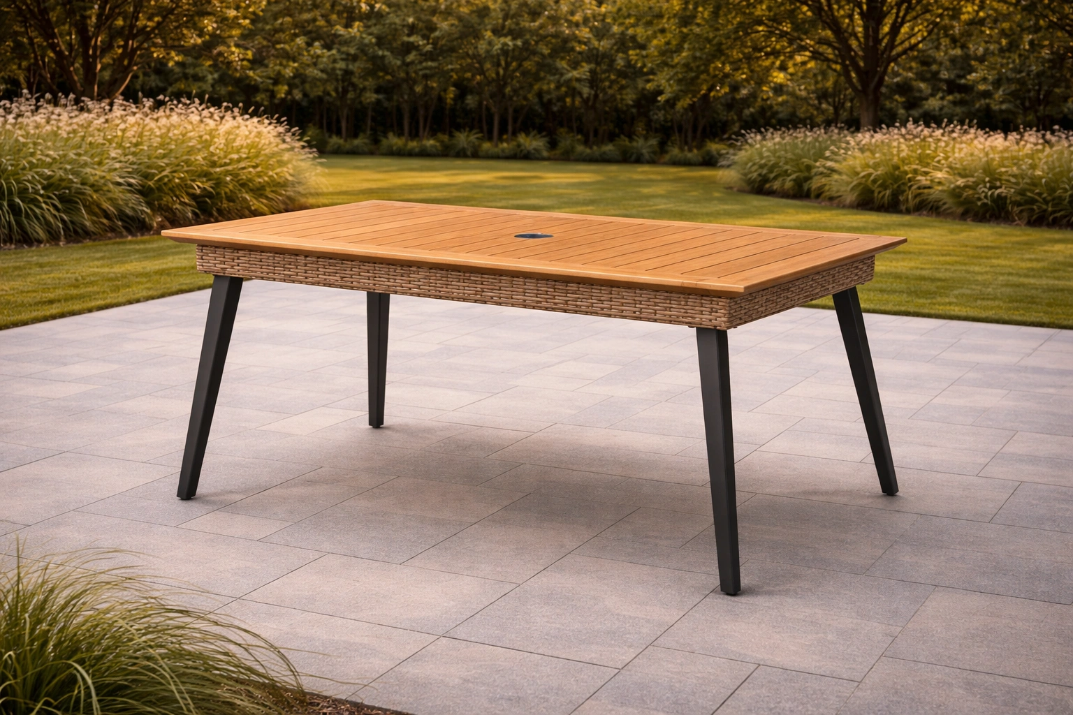 Table rectangulaire en bois d'acacia et tressage synthétique