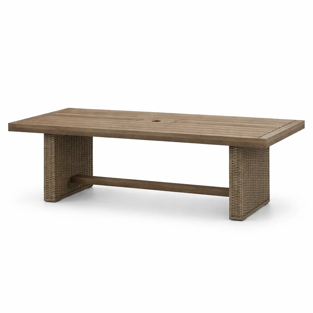 Table de jardin rectangulaire en bois et résine tressée 220x100x75 cm