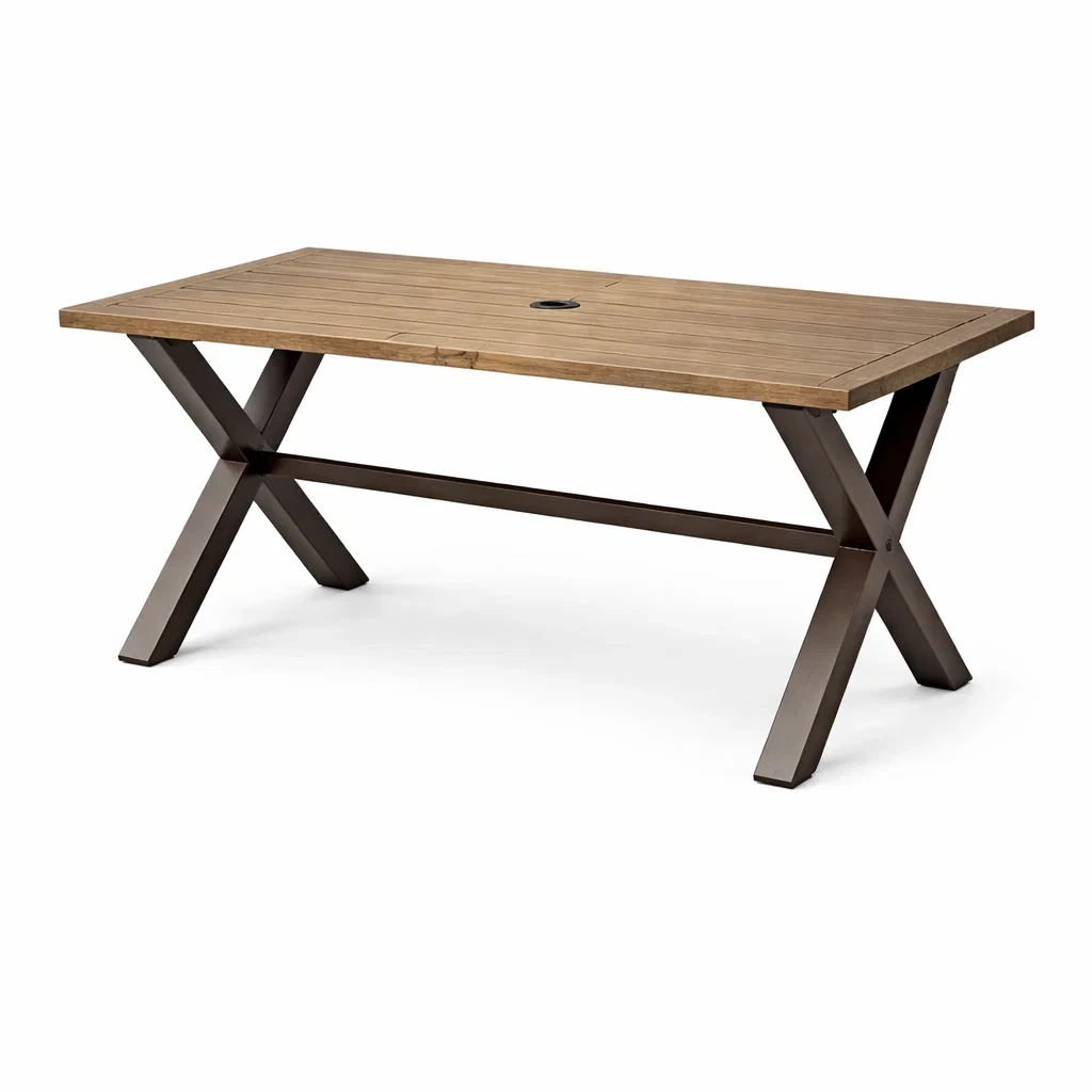 Table de jardin rectangulaire en bois et métal