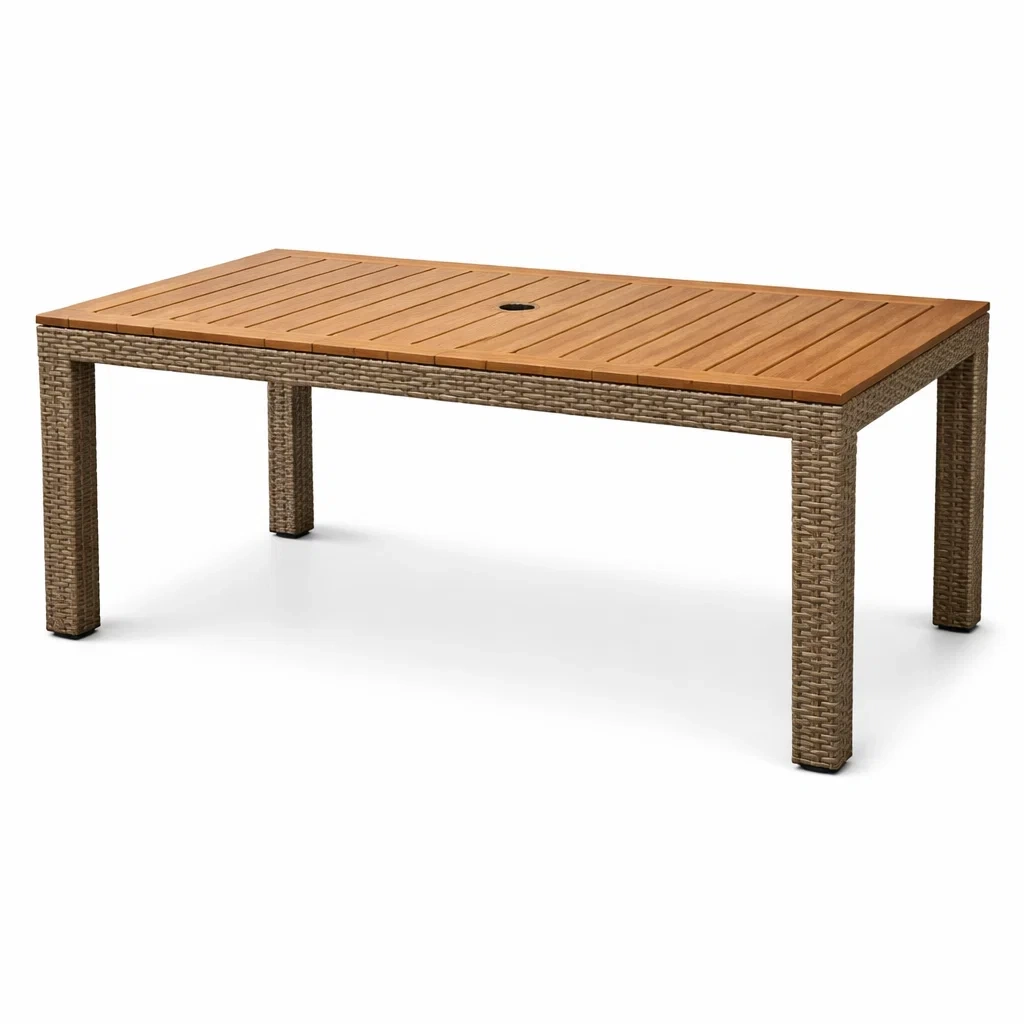 Table de jardin en bois et résine tressée