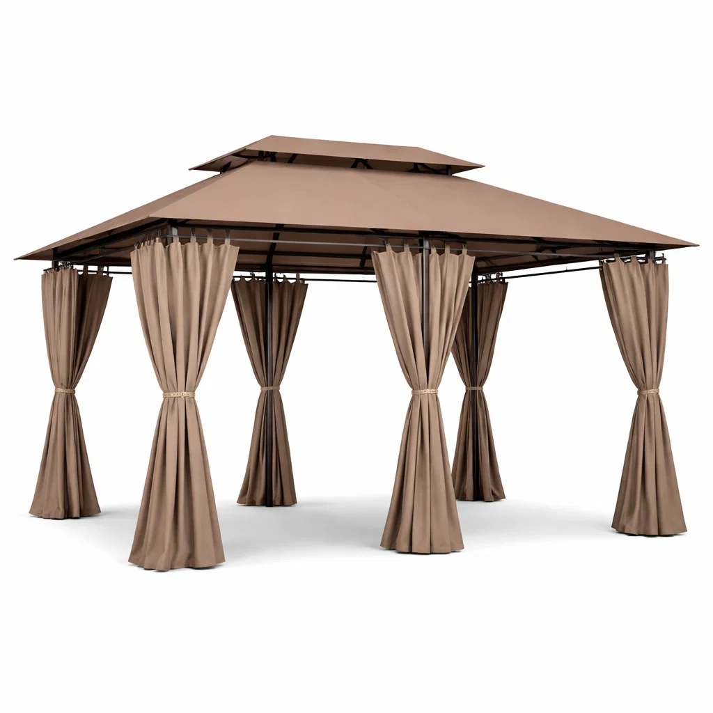 Tonnelle de jardin en métal avec rideaux en polyester marron 300x400 cm